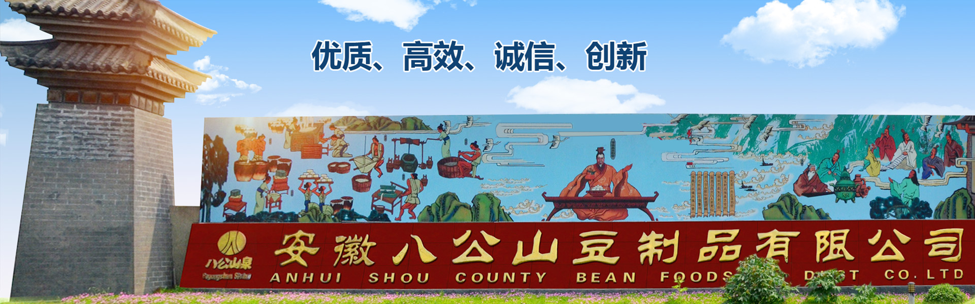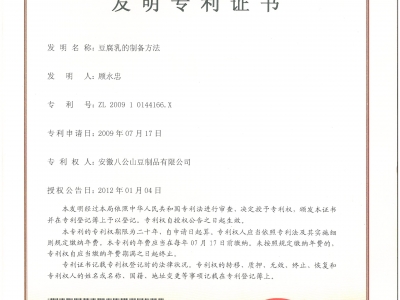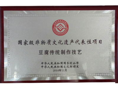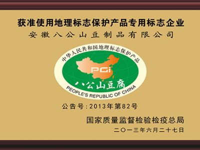 近年來,公司以“保護豆腐遺產,傳承豆腐技藝,弘揚豆腐文化”為理念,大力發展豆制品產業,企業通過ISO9001質量管理體系認證,被評為“全國豆制品行業50強企業”、“全國主食加工示范企業”、“中國豆制品行業質量安全示范單位”、“全國工業旅游示范點”、安徽省“農業產業化龍頭企業”。系列產品被授予“安徽名牌產品”、“安徽省知名旅游商品”稱號,“八公山泉”牌商標被評為安徽省“著名商標”。八公山豆腐被授予國家地理標志保護產品,其傳統制作技藝入選第四批國家級非物質文化遺產代表性項目名錄,我公司被文化部批準為該項目保護單位。